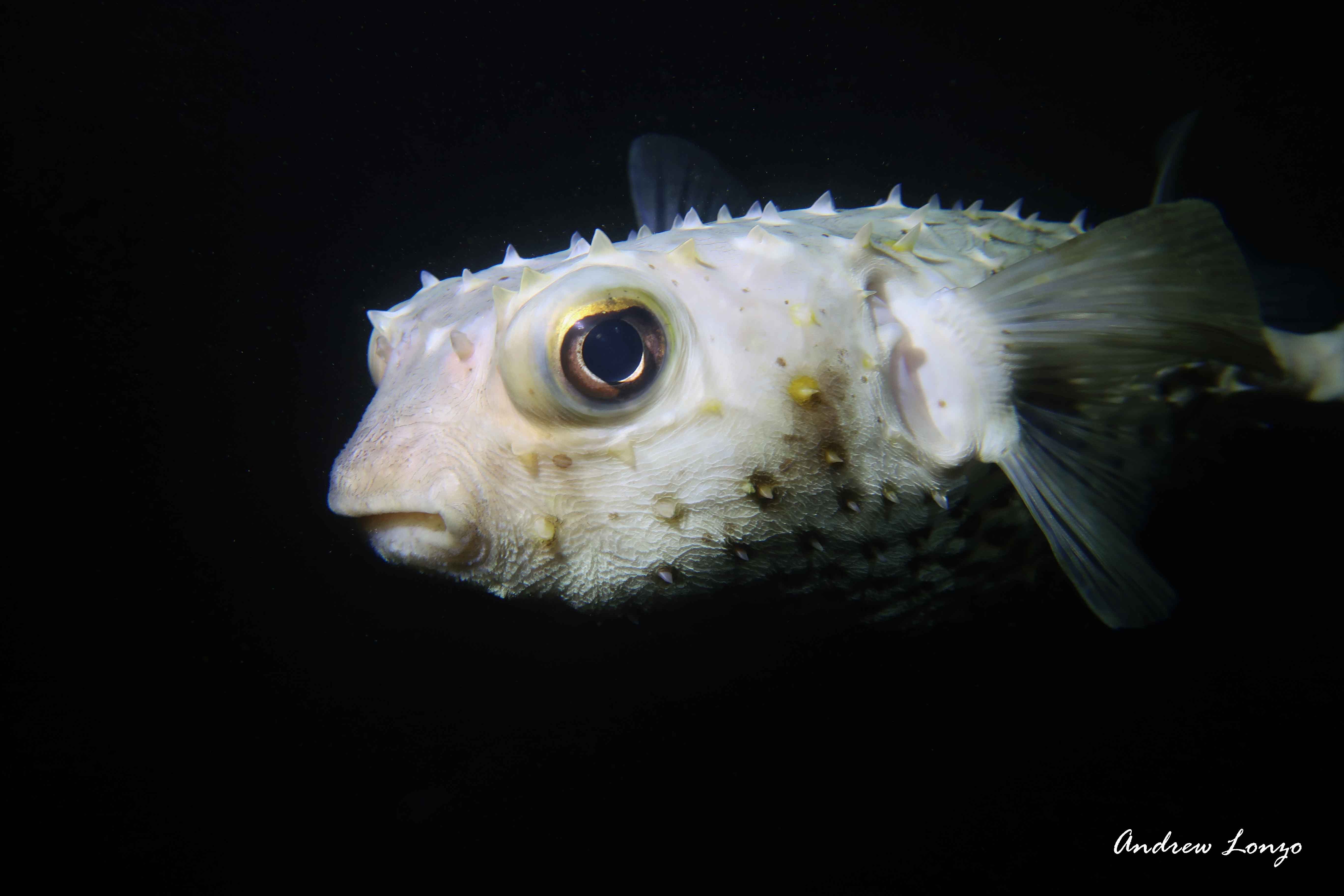 Part of our Beauty Discovered series. Curious small pufferfish at night. Shot with Canon 5D Mark IV in a Nauticam Houseing, with Kraken Mini Flare video lights, and Sea & Sea YSD2 strobes. Take our photography class to learn how to capture breathtaking memories of your own discoveries.