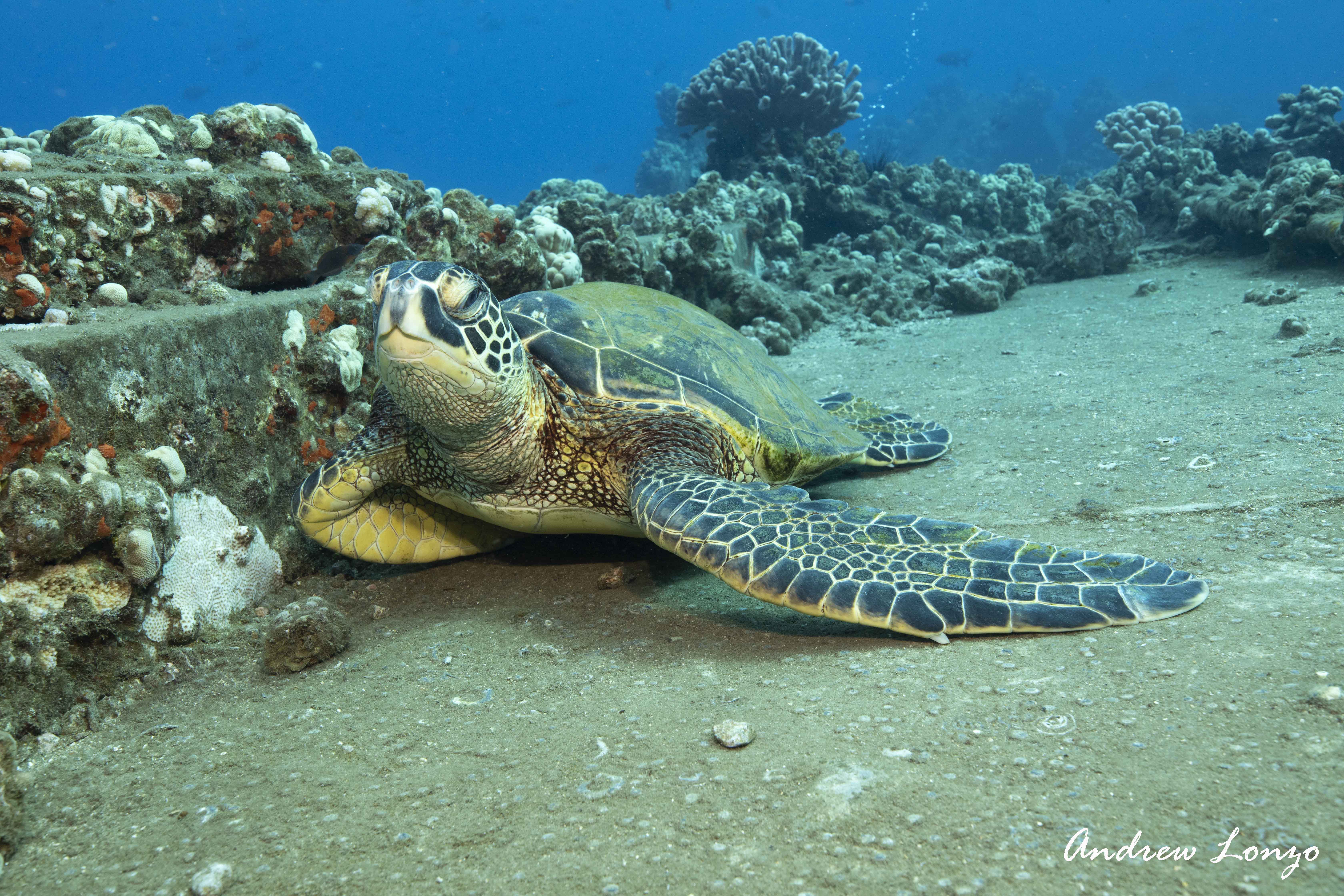 Part of our Beauty Discovered series. Turtle waking up from a nap on a cement slap at the Mala Wharf in Maui Hawaii. Shot with Canon 5D Mark IV in a Nauticam Houseing, with Kraken Mini Flare video lights, and Sea & Sea YSD2 strobes. Take our photography class to learn how to capture breathtaking memories of your own discoveries.